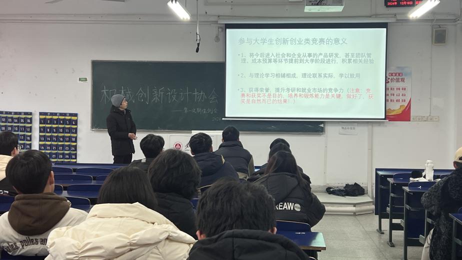 漆小敏老师以协会的历史沿革为引子,穿插个人指导竞赛的丰富经历,生动诠释了创新对于老员工成长成才的重要意义。他强调,参与创新创业类竞赛不仅能为未来的创业和职业生涯奠定坚实的实践基础,包括团队管理、项目开发等多方面的能力积累,更是对“学有所成,不断进步”理念的最好践行。老师鼓励协会成员们要将理论知识与实践技能紧密结合,通过实际操作将所学知识转化为解决问题的能力,从而在实践中不断磨砺自我,提升修养。
