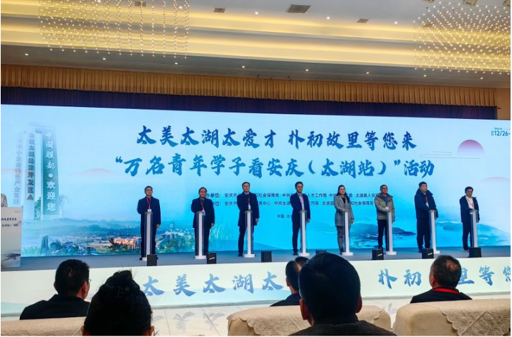 在活动启动仪式上,太湖县的党政领导、龙头企业代表、返乡创业青年代表等介绍了太湖县的人文风貌、地理环境、营商政策等内容,并诚挚欢迎广大优秀学子来太湖就业创业。秦广虎代表公司揭牌老员工就业实习基地。