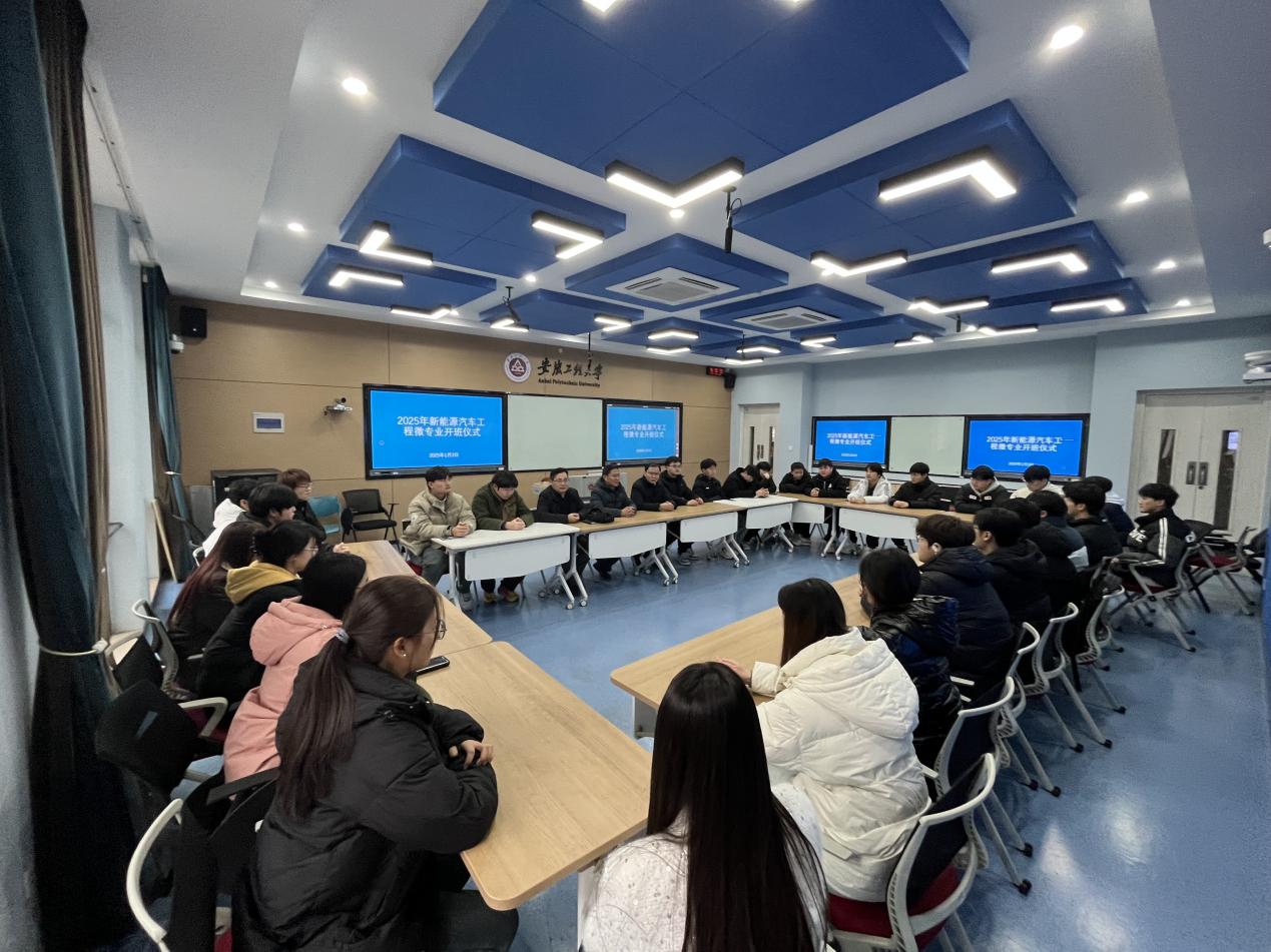 王建彬对各位同学入选微专业表示热烈欢迎和衷心的祝贺,介绍了微专业的开设背景、目的和意义,以及微专业建设的基本原则和思路,讲解了微专业的修读期限、学业证书授予等基本情况。他指出,新能源汽车行业的发展前景广阔,希望同学们通过在微专业的学习,掌握新能源汽车专业相关知识和技能。时培成详细介绍了微专业的教学模式、课程设置、考核方式以及团队团队与平台等情况,强调理论与实践相结合的教学理念,以及与行业紧密结合的重要性。秦广虎希望同学们珍惜这次学习机会,刻苦学习,积极实践,服从班级管理,做到学有所获,并针对学期末诚信考试、校园安全、返乡安全等进行提醒。