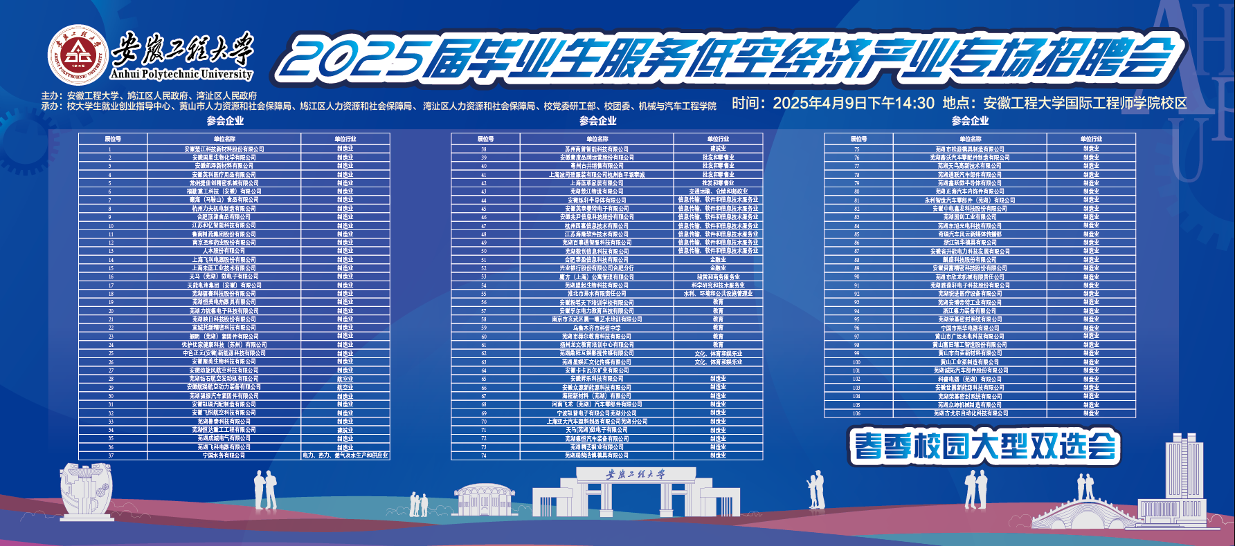 为持续推进毕业生就业服务工作,4月9日,2025届毕业生服务低空经济产业专场招聘会在国际工程师公司校区举行。本次招聘会由m88官网、鸠江区人民政府、湾沚区人民政府主办,校老员工就业创业指导中心、公司党委研工部、校团委、m88承办,来自省内外100余家用人单位来校招聘人才。