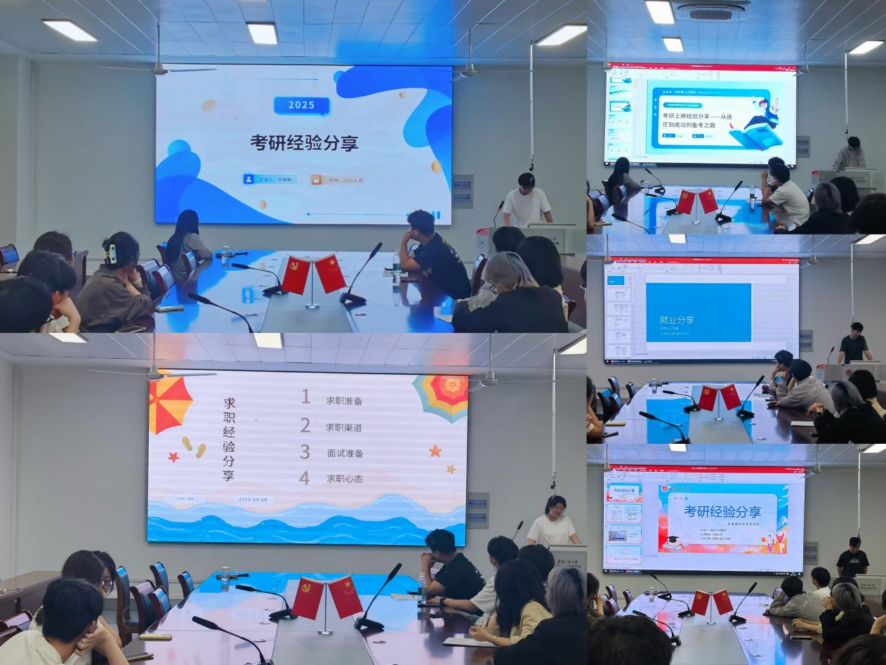 分享会上,优秀党员代表邢卓、王晴结合自身求职经验,从行业选择、简历优化、面试技巧等方面提供个性化指导,建议低年级同学要“早规划、早准备”,在学好专业知识的同时,积极参与实习实践、学科竞赛等活动,逐步明确职业目标。刘晨雨、卢灿、李辉辉则围绕院校选择、复习规划、心态调整等方面,详细介绍了考研上岸河海大学、安徽大学、北京理工大学的经历,重点分享了公共课复习方法和专业课备考策略,强调要深入研究真题,构建知识框架,同时推荐了实用的参考书目和在线课程资源。