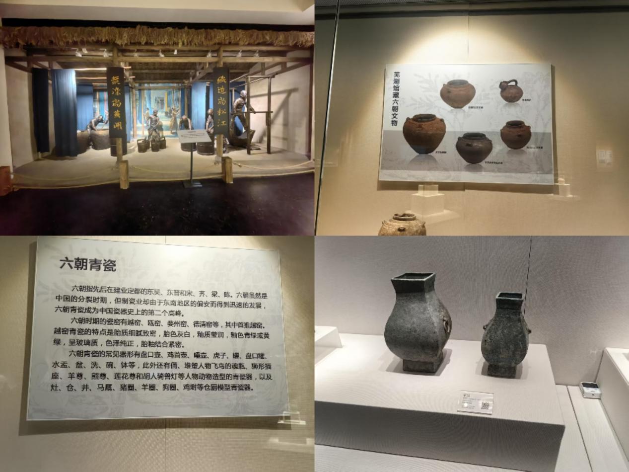 序厅右侧的序言以精炼概括了展陈内容,中间大理石柱上“鸠兹春秋 水韵無湖”的展标,源自北宋书法家米芾笔迹。芜湖春秋时称“鸠兹邑”,西汉设“无湖县”,“鸠兹”与无草字头的“無湖”都是其历史地名。