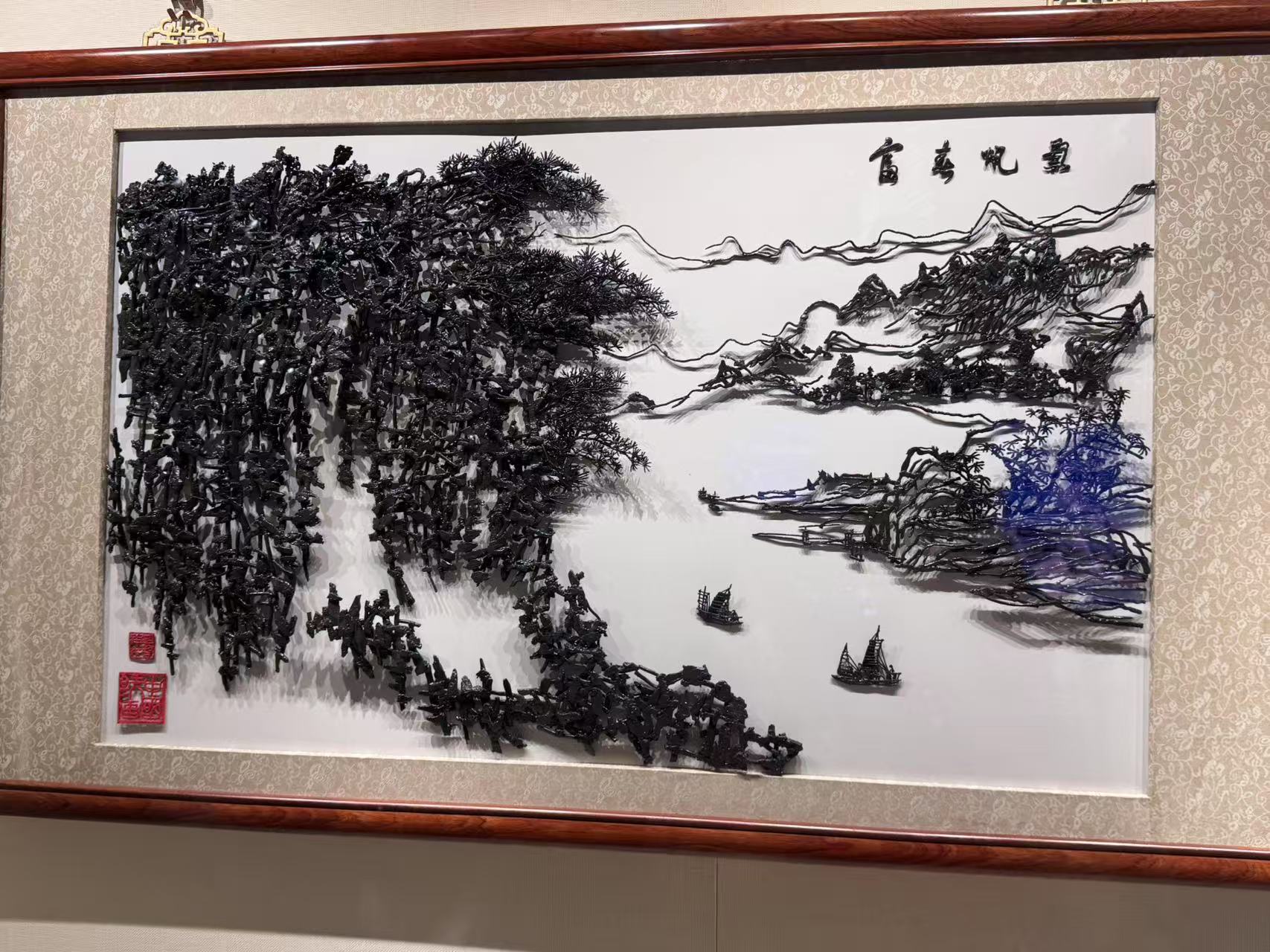 序厅右侧的序言以精炼概括了展陈内容,中间大理石柱上“鸠兹春秋 水韵無湖”的展标,源自北宋书法家米芾笔迹。芜湖春秋时称“鸠兹邑”,西汉设“无湖县”,“鸠兹”与无草字头的“無湖”都是其历史地名。