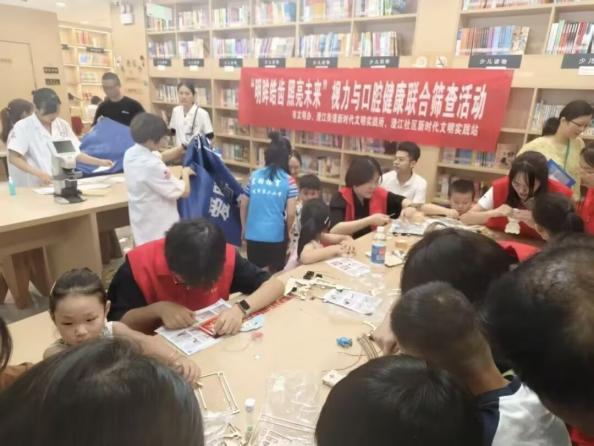 现场为民口腔医院、宣城好视力眼科诊所为社区小朋友提供了口腔、视力检查。团队通过发放资料、现场讲解等方式引导市民群众养成良好的健康生活习惯,带领小朋友前往爱眼咨询处进行视力检查,包括裸眼视力检查,矫正视力检查,屈光检查,眼部健康检查等等,对于小朋友们的眼部健康问题,医生们一方面给予了正确用眼建议,一方面给予了缓解用眼过度建议。