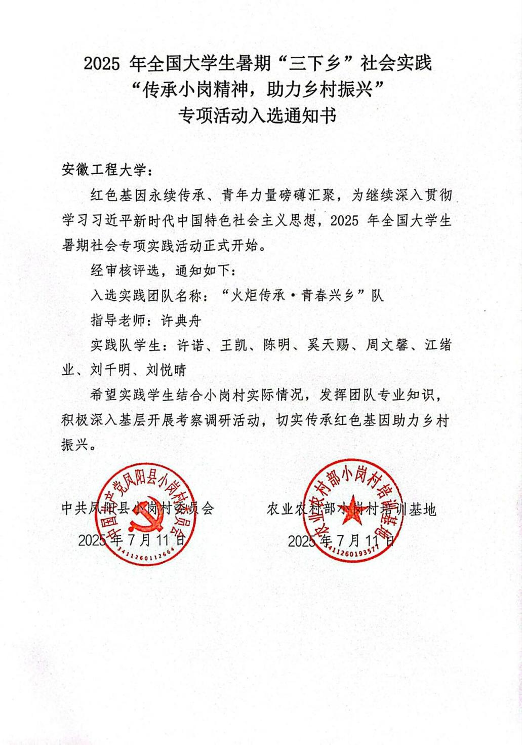 为落实习近平总书记在安徽小岗村农村改革座谈会上的重要讲话精神,引领广大青年学子在建设社会主义现代化强国的新征程中更好地传承和发扬“小岗精神”,经团队申报、组织遴选,m88“火炬传承 青春兴乡”团队成功入选2025年暑期“三下乡”专项活动。