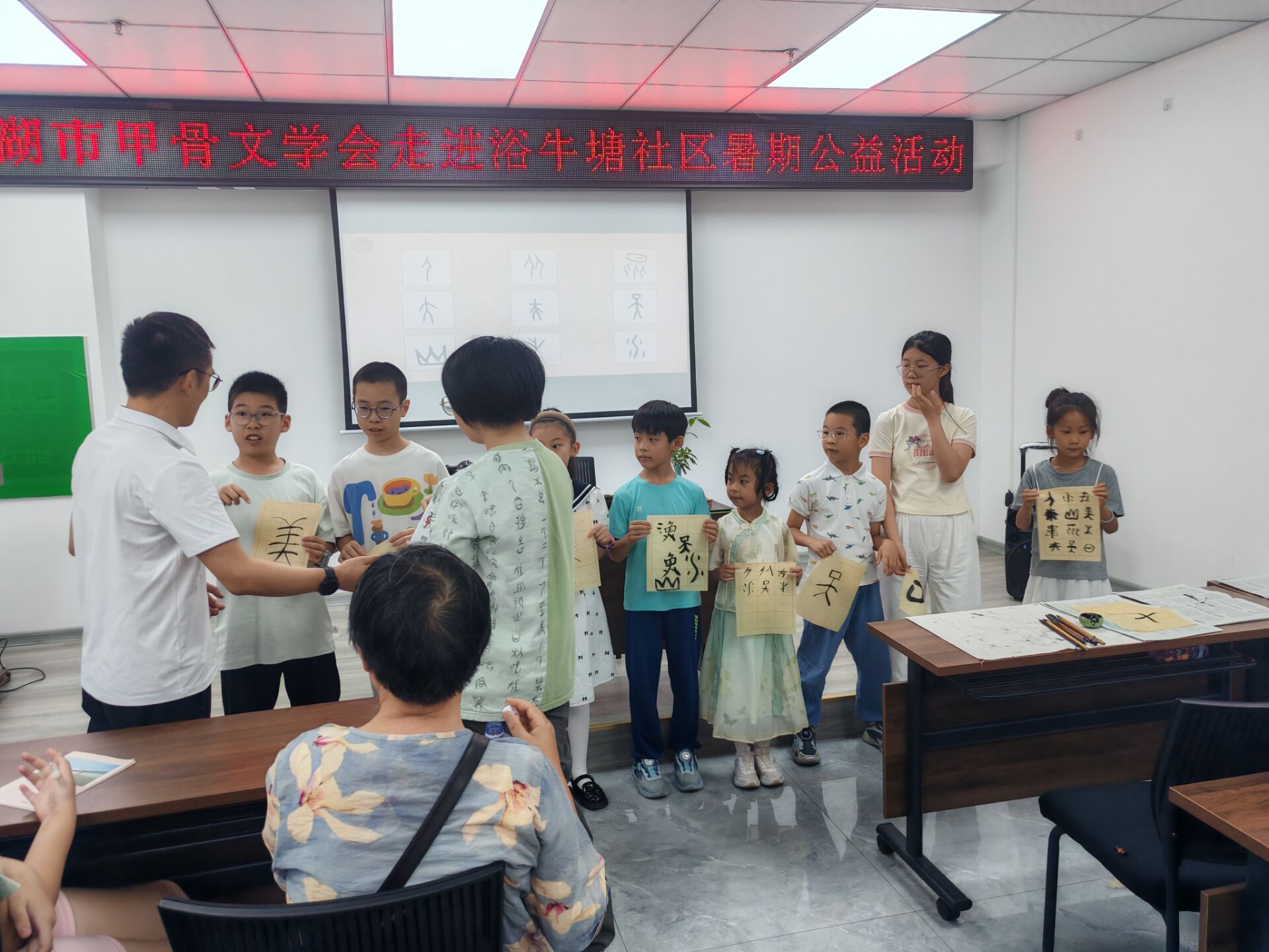 7月21日,m88官网青芒课业护航服务团队走进浴牛塘社区,协助甲骨文学会举办以“探秘甲骨文·传承中华魂”为主题的暑期“三下乡”实践活动。20名社区青少年齐聚一堂,在志愿者们的精心组织下,通过生动有趣的活动,沉浸式体验甲骨文与中华茶文化的独特魅力,在实践中受教育、长才干、作贡献,助力社区文化建设与青年员工成长。