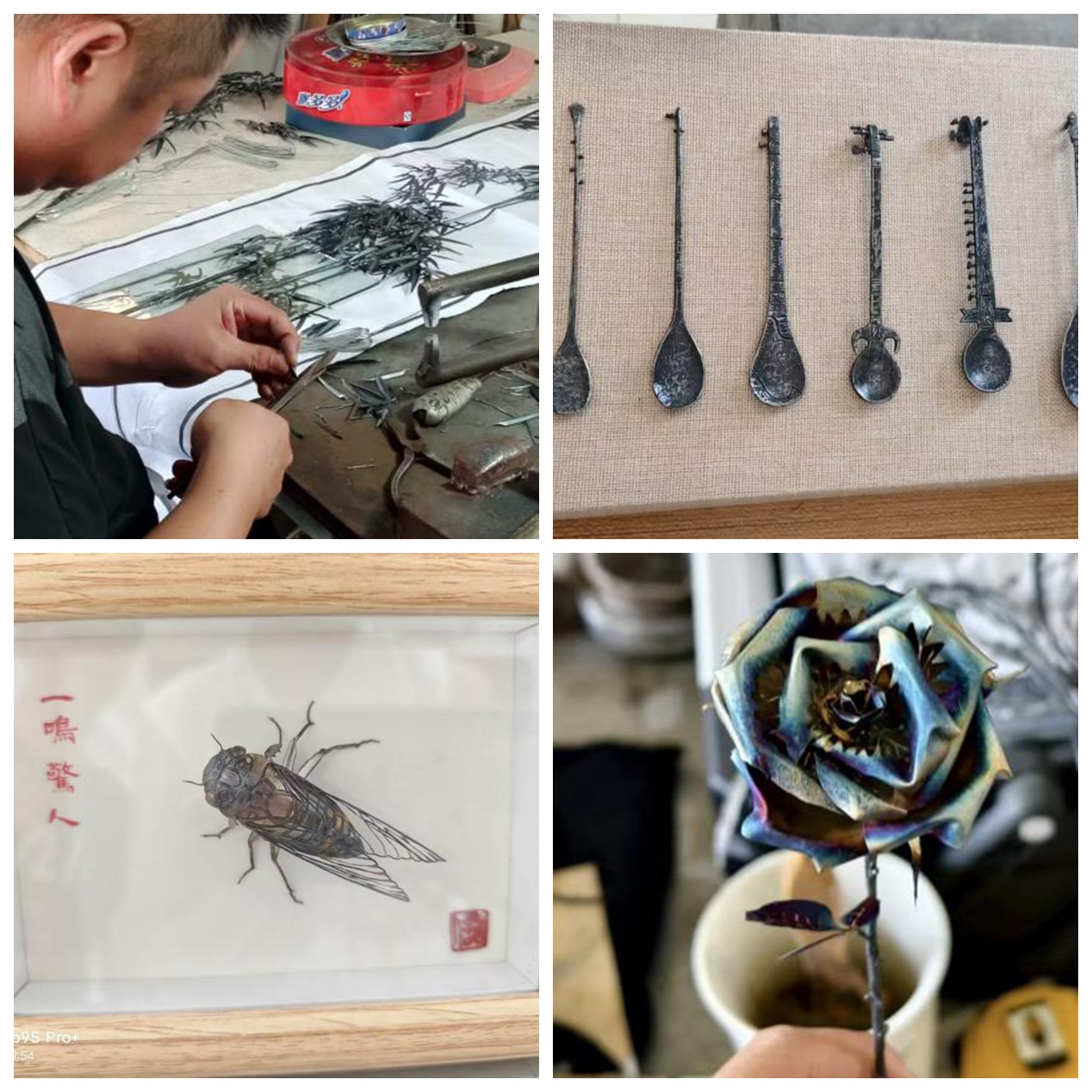 当“非遗”遇上网红经济,传承人们找到了新战场:“大数据让我们更懂年轻人,但真正打动人的,始终是铁画本身的魅力。”新媒体只是桥梁,传承的核心仍是对技艺的坚守。她们在创新传播的同时,始终坚持跟着老一辈匠人学习锻铁、焊接等核心技艺,确保每一件作品都保留着铁画“刚劲有力、古朴典雅”的精髓。今年3月,在师父的悉心指导下,孙思萌和许可独立创作的铁画玫瑰在网络上发布。作品一经推出,便迅速吸引了众多网友的目光,最终被一名客户买走。这不仅是对她们技艺的肯定,更是为铁画销售开拓了新的路径。
