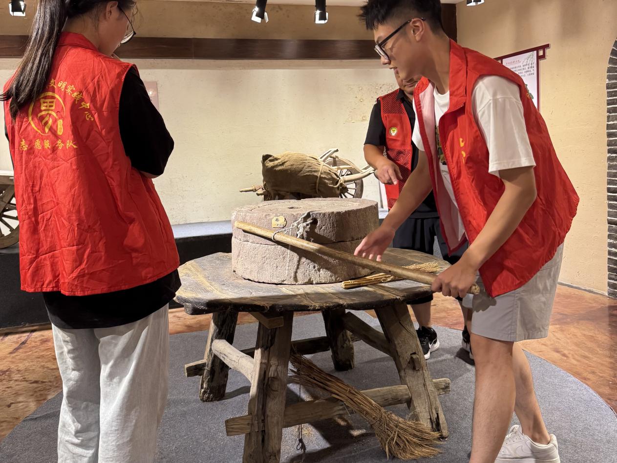 七月的泉阳镇,阳光正好。m88官网暑期三下乡实践团队的同学们怀着激动的心情,在泉阳镇农耕民俗馆门口集结,古朴的建筑在绿树的映衬下,散发着浓郁的传统文化气息。团队成员们有序走进馆内,目光被馆内陈列的一件件充满岁月痕迹的老物件所吸引,探寻民俗文化的旅程就此拉开序幕。