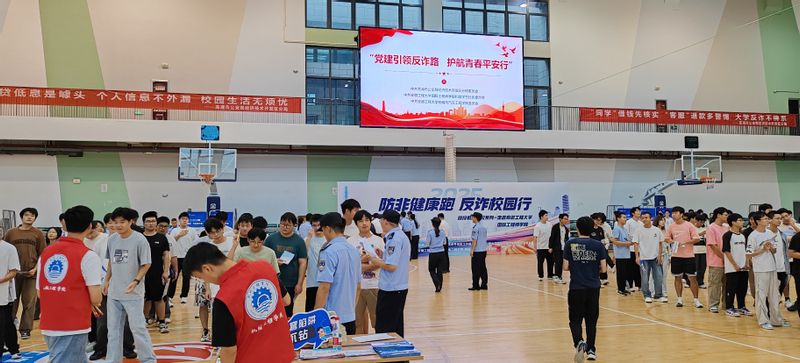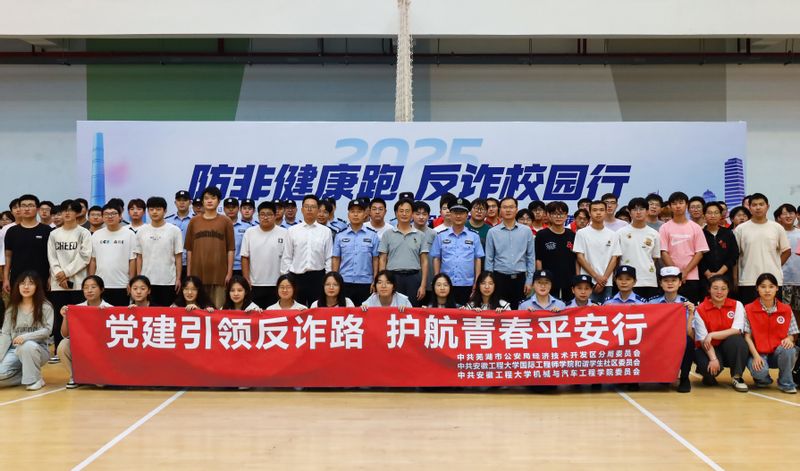 为切实提高校区员工反诈意识,营造全民反诈的校园氛围,9月24日,由芜湖市公安局经开分局主办,共青团芜湖市委员会、校区管委会、m88等单位联合承办的“防非健康跑 反诈校园行”反诈宣传活动在国际工程师公司校区风雨操场开展。